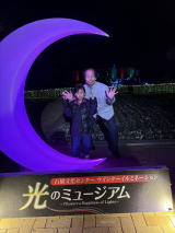 師走の夜 家族で楽しみました。レーザー照射のようなビームが庭園の池と樹木にぱぱぱぱっぱっぱ・・・・・・・・・・